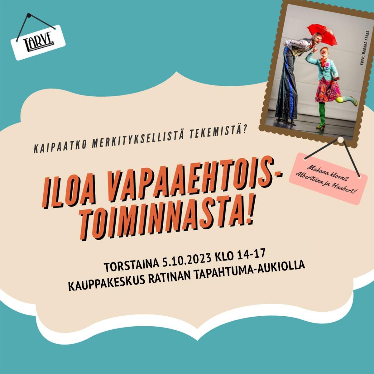 Tapahtuman aikana yleisöä viihdyttää klovnikaksikko Alberttiina ja Huubert. Lisäksi voit voittaa palkintoja onnenpyörästä. Tapahtuman järjestää TARVE – Tampereen Voimavaraverkosto ry, joka on vapaaehtoistoimintaa järjestävien järjestöjen ja yhteisöjen yhteistyöyhdistys.