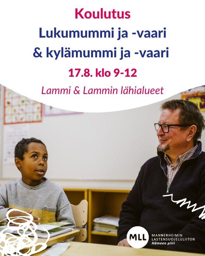 Lukumummina tai -vaarina vierailet alakoululla kerran viikossa ja luet yhdessä lapsen kanssa. Toiminnan tarkoituksena on kannustaa lapsia lukemisen pariin ja tukea lukutaidon kehittymistä. Tässä koulutuksessa käydään läpi toiminnan periaatteet sekä mm. lukutuokioilla käytettäviä lukutekniikoita. Koulutuksen jälkeen sinulla on valmiudet toimia lukumummina tai -vaarina lähikoulullasi. Toiminnasta voit lukea lisää täältä.